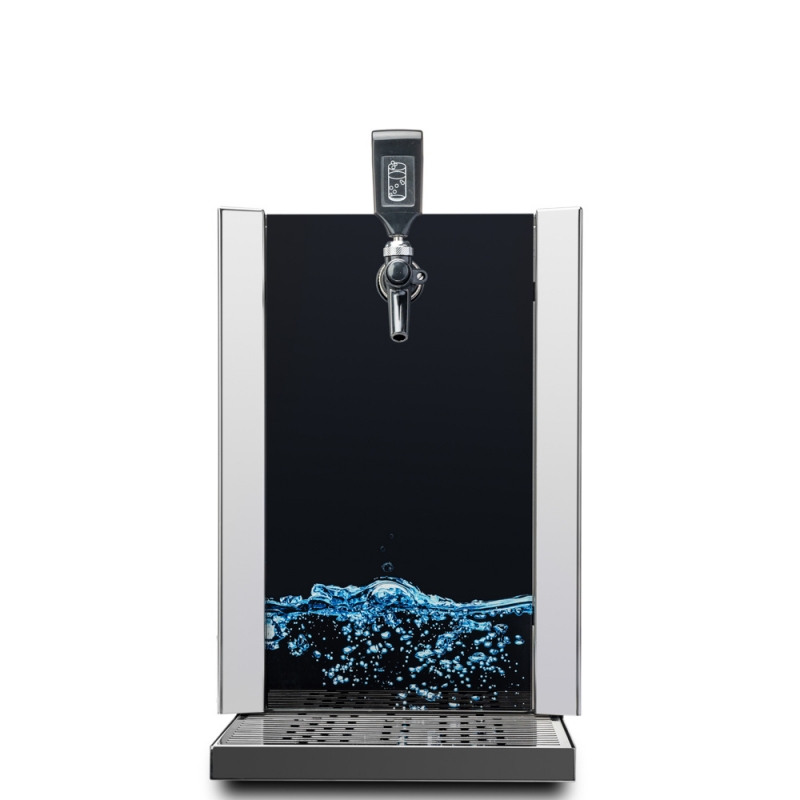 - Sodobar je vyroben z vysoce kvalitní oceli v moderní design se skleněnou deskou čelního panelu s motivem vody.